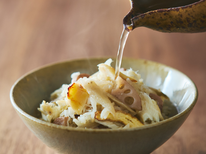 ④お好みで「鯛味噌」、〆に「茶漬け用だし」をかけてお召し上がりください。