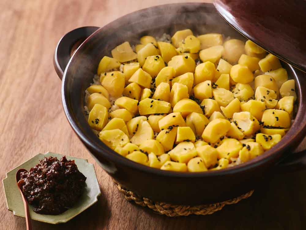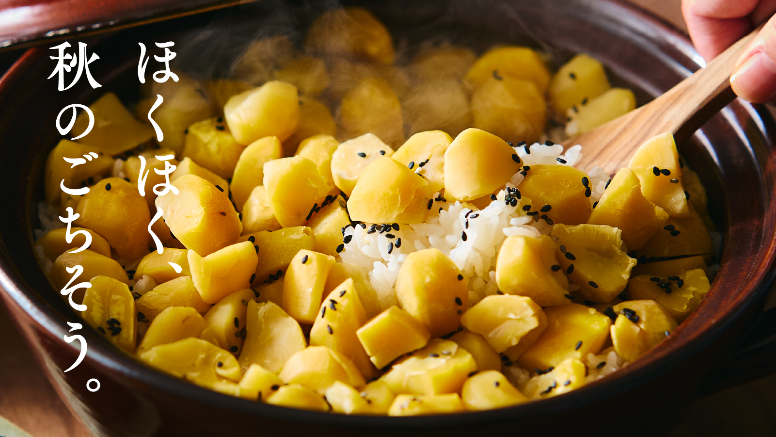 毎月その時季に合わせた出来立てのごはんがご自宅で愉しめる、予約限定「いとはんごはん」シリーズ。 10月受取りは、秋の味覚の栗を味わう一品です。