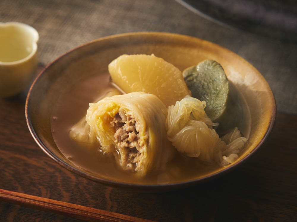 しっかりとした旨みがありながら食べやすい「岩手で育てた絶品鴨」を使用した白菜巻きは、だしにもその深い旨みが溶け出しています。