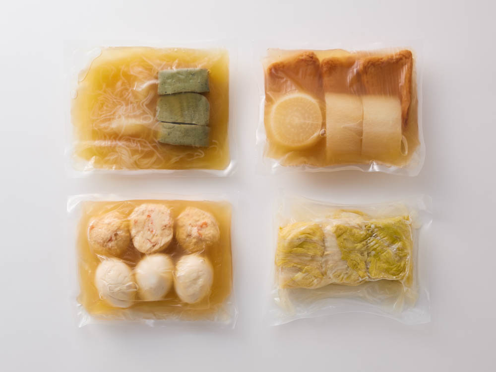 定番の具材に加え、食べ応えのある白菜巻きなど、7品目を詰め合わせました。だしごと鍋に入れて温めるだけで、滋味深い美味しさを手軽にお楽しみいただけます。