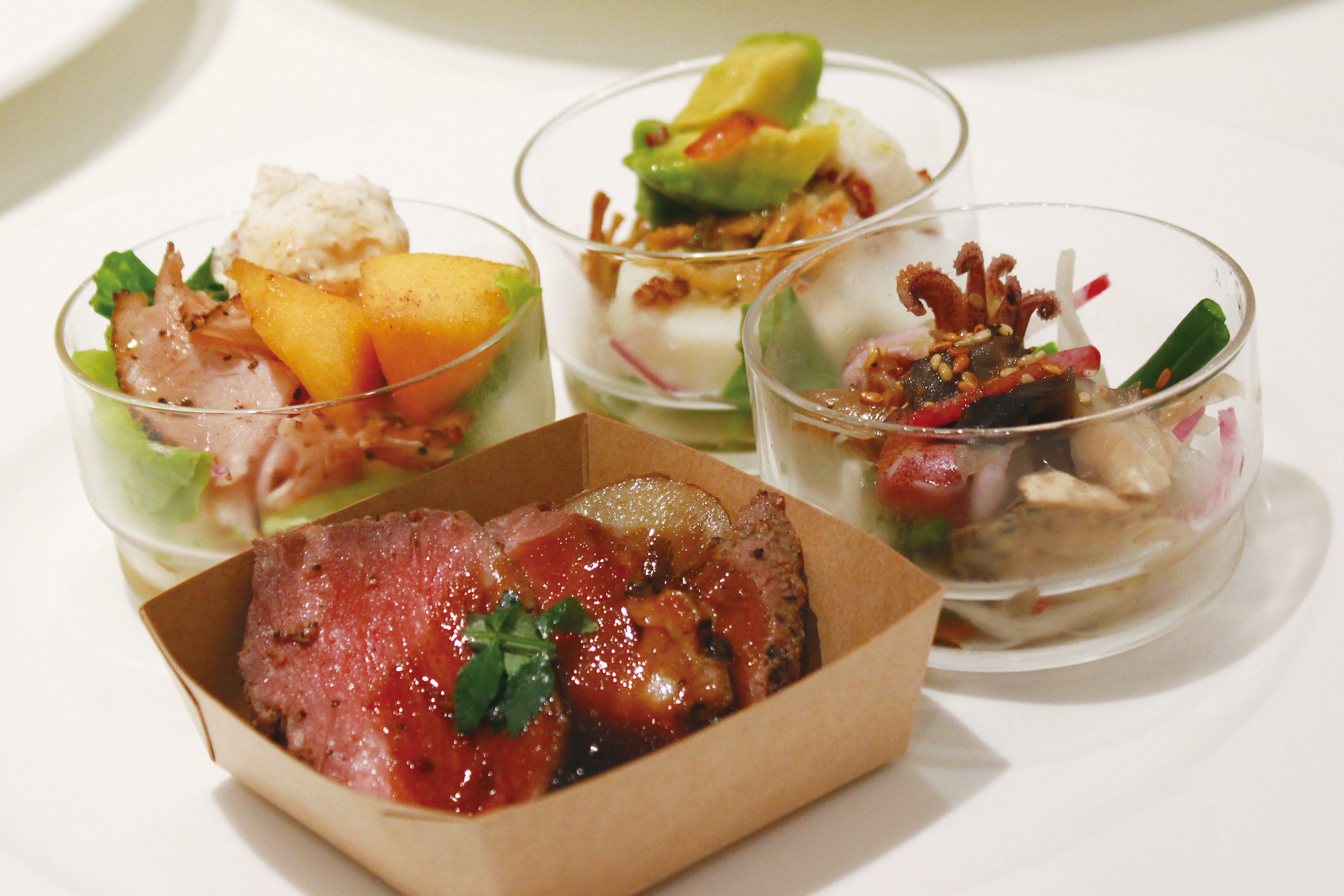 今、ほれ込んでいる素材「青森サーモン」を使った「炙りレアサーモン」と「キッシュ」を提供。 生絞りのレモン果汁を使用したソースがとても美味しい。RF1のキッシュのファンなので、イベント限定のメニューが食べられてうれしい!という声も。