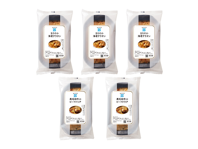 - 野菜(玉葱(国産)、人参、にんにく)、牛乳(国内製造)、うるち米(国産)、牛肉(国産)、洋酒、マッシュルーム、チーズ、デミグラスソース、押し麦、トマトソース、植物油脂、トマトケチャップ、ホワイトルウ、牛脂、バター、チキンブイヨン、クリーム、食塩、香味調味料、ビーフ・野菜ブイヨン粉末、香辛料/増粘剤(加工デンプン、グァーガム)、加工デンプン、キシロース、調味料(アミノ酸等)、酸味料、着色料(カラメル)、香料、香辛料抽出物、(一部に乳成分・小麦・大豆・牛肉・鶏肉・ゼラチンを含む)