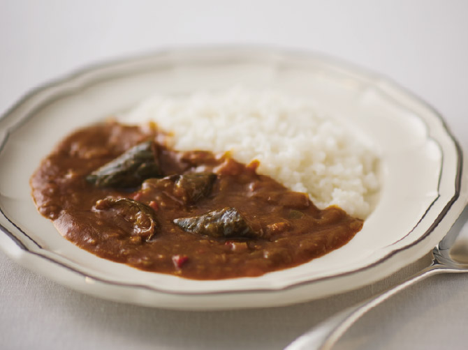 - チキンブイヨン(国内製造)、揚げ茄子、オニオンソテー、リンゴピューレ、ピーマン、豚肉、トマト加工品、ラード、鶏肉、小麦粉、トマトケチャップ、カレー粉、野菜ペースト(玉葱、人参、セロリ、その他)、香味調味料、マンゴーペースト、食塩、香辛料、生姜ペースト、にんにくペースト、ウスターソース、香辛調味料/酸味料、調味料(アミノ酸等)、香辛料抽出物、着色料(カラメル)、(一部に乳成分・小麦・大豆・豚肉・鶏肉・りんごを含む)