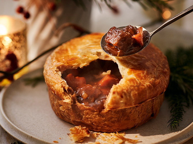 上部のパイを崩しながら器のパイも一緒に召し上がってください。