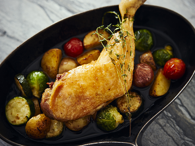 コンフィとはフランス料理でよく使われる調理法。食材を低温のオイルで煮込み、中はしっとりジューシーに。ご自宅では表面をこんがり焼き上げてください。