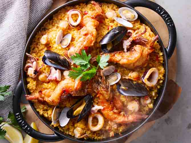 仕上げにオリーブオイルをかけて、風味豊かに。このひと手間で、おいしさが際立つパエリアキットです。