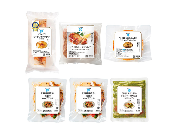 - 帆立(北海道)、じゃがいも(国産)、調味海老、植物油脂、ブロッコリー、パプリカ、還元水あめ、食塩、にんにく、醤油、香辛料/pH調整剤、トレハロース、増粘剤(加工デンプン)、調味料(アミノ酸)、(一部に小麦・えび・大豆を含む) ●原材料配合割合:帆立26%、ポテト(じゃがいも)26%、海老(調味海老)17%(仕込み時)