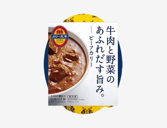 - 牛肉(国産)、オニオンソテー、チキンブイヨン、リンゴピューレ、ブイヨン(仔牛骨、牛肉、野菜(玉葱、人参、セロリ、にんにく)、その他)、小麦粉、牛脂、バター、マンゴーペースト、トマトケチャップ、香辛料、デミグラスソース、ポークエキス、食塩、香味調味料、にんにく、生姜、植物油脂、カレー粉、ゼラチン、牛骨、玉葱、人参、セロリ/着色料(カラメル)、増粘剤(加工デンプン、カラギナン)、調味料(アミノ酸等)、酸味料、香辛料抽出物、(一部に乳成分・小麦・大豆・牛肉・豚肉・鶏肉・りんご・ゼラチンを含む)