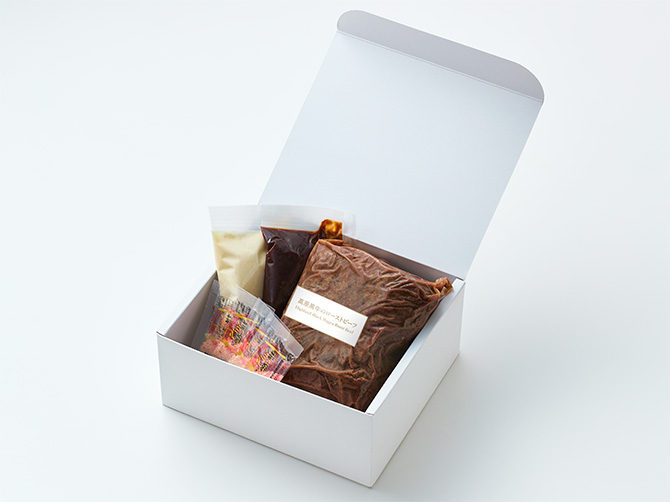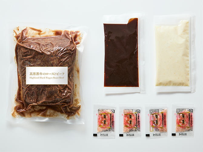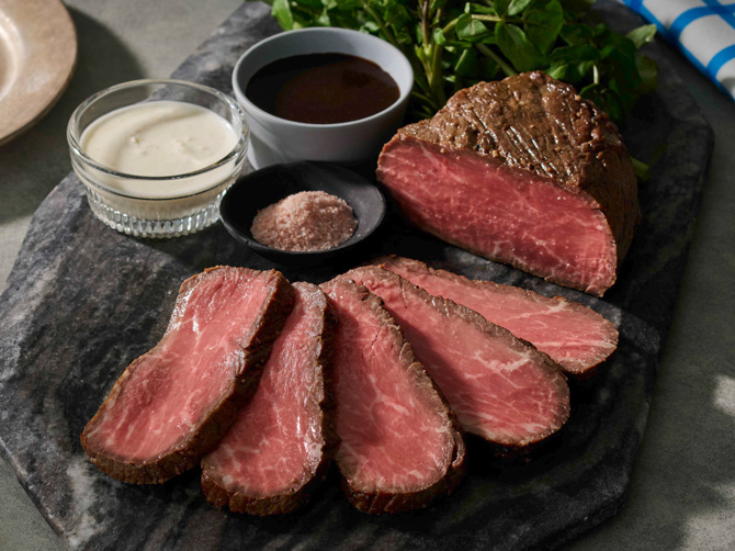 芳醇な赤ワインソース、西洋わさびの辛みがアクセントのホースラディッシュソース、お肉の旨みが際立つピンクロックソルトでお楽しみください。 赤ワインソースは深めの容器に移し、電子レンジ(500W)で30秒ほど、温めるとより香り豊かな味わいが広がります。