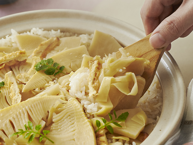 筍の美味しさを最大限に引き出すため、炊き込み用だしは二番だしと昆布だし、塩、醤油、みりんのみで、優しい味わいにしました。