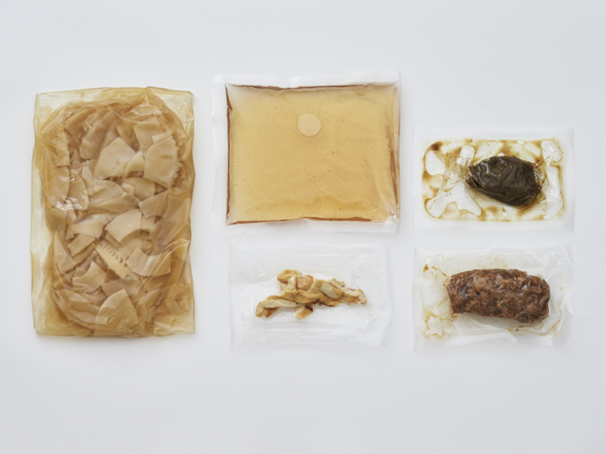 - 筍煮(だし汁(昆布だし、かつお節、昆布)(国内製造)、水煮筍、醤油、みりん、砂糖、かつお節)、筍ごはん用だし(だし汁(昆布だし、かつお節、昆布)、だし汁(昆布だし、昆布)、食塩、みりん、醤油)、山椒香る鶏そぼろ(鶏肉、醤油、砂糖、酒、魚醤、みりん、香辛料、ハチミツ)、調味味噌、油揚げ/調味料(アミノ酸等)、凝固剤(塩化Mg)、着色料(カラメル)、(一部に小麦・大豆・鶏肉を含む)