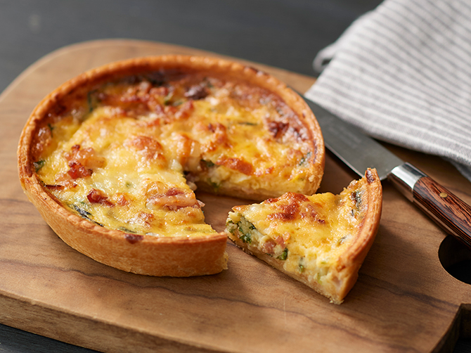 - 3種のチーズとベーコンの旨みがひとつになった、風味豊かな味わい。定番のキッシュ・ロレーヌ(ロレーヌ地方のベーコンとチーズのキッシュ)にほうれん草を加えて、シンプルで奥深いおいしさに。手軽なランチにも、晩酌ワインのおつまみにも、ぴったりです。