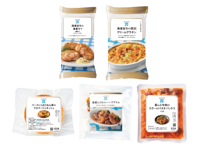 - イカ(ベトナム)、じゃがいも(国産)、調味海老、ブロッコリー、植物油脂、パプリカ、酒、チキンブイヨン、還元水あめ、食塩、醤油、香味食用油、にんにくペースト、バジル、香辛料、香味調味料/増粘剤(加工デンプン)、pH調整剤、トレハロース、調味料(アミノ酸等)、酸味料、香辛料抽出物、(一部に小麦・えび・かに・大豆・いか・牛肉・豚肉・鶏肉を含む) ●原材料配合割合:魚介(イカ30%、海老(調味海老)16%)(仕込み時)