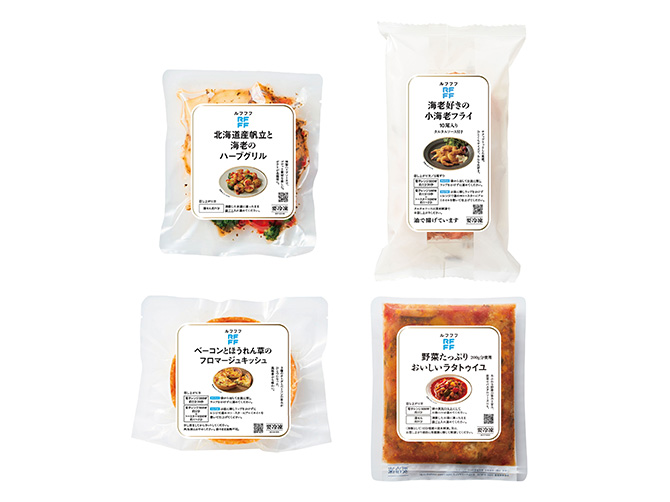 - 海老フライ(海老(インドネシア)、液卵白、食塩、砂糖、オキアミペースト、香辛料、衣(パン粉、バッター粉(小麦粉、クラッカー、でん粉、植物性油脂、砂糖))、揚げ油(なたね油))、ソース(半固体状ドレッシング(食用植物油脂、醸造酢、食塩、卵黄、鶏卵加工品、乳たんぱく、ゼラチン)、玉葱、鶏卵加工品、パプリカ、セロリ、きゅうり、調味酢、砂糖、レモン果汁、レモン、食塩、ディル、香辛料)/加工デンプン、pH調整剤、トレハロース、調味料(アミノ酸等)、増粘剤(加工デンプン、増粘多糖類)、着色料(カロチン)、香料、香辛料抽出物、リン酸塩(Na)、(一部に卵・乳成分・小麦・えび・大豆・ゼラチンを含む)