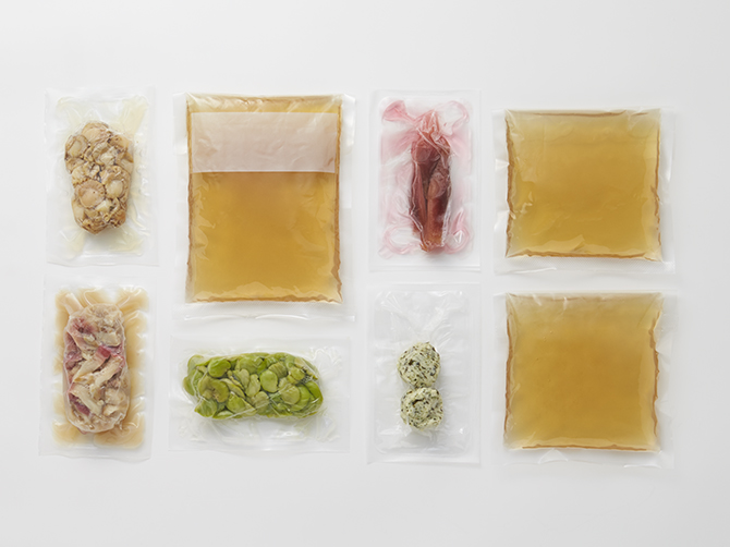 - 茶漬け用貝だし(だし汁(ボイルあさり、しじみ、かつお節、昆布、干し貝柱)(国内製造)、だし汁(昆布だし、かつお節、昆布)(国内製造)、醤油、食塩、砂糖)、炊飯用貝だし(だし汁(ボイルあさり、しじみ、かつお節、昆布、干し貝柱)、だし汁(昆布だし、昆布)、みりん、醤油、食塩)、ホッキガイ、帆立(帆立、醸造調味料)、そらまめ、みょうがの甘酢漬け(ミョウガ、甘味リンゴ酢、砂糖、ハチミツ、食塩)、海苔バター(バター、はばのり、食塩、乾燥青のり)、(一部に乳成分・小麦・大豆・りんごを含む)