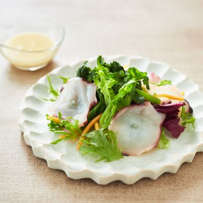 北海道産たこ使用 漬けだこと菜花の和さらだ